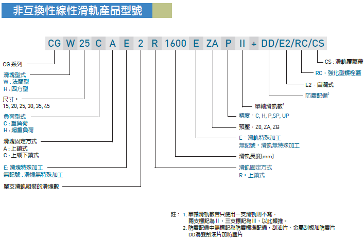 CG系列滑軌型號含義:
