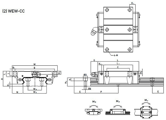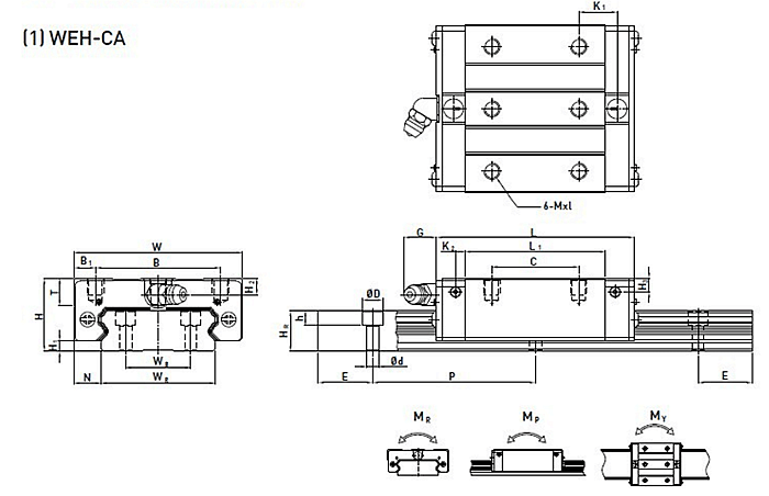 WE系列采用四列鋼珠承受負(fù)荷的設(shè)計(jì),藉由45度的接觸角度設(shè)計(jì),具備四方向等負(fù)載特點(diǎn)以及自動(dòng)調(diào)心的功能,可吸收安裝面的裝配誤差,得到高精度的訴求。同時(shí)增大線性滑軌寬度和降低組合高度,實(shí)現(xiàn)了超高扭轉(zhuǎn)阻抗,在環(huán)境有要求空間的限制時(shí),或有大力矩作用的需求下,可采用單軸的方式使用。