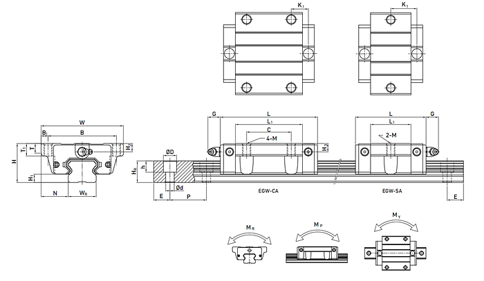 EGW系列滑軌的基本靜額定負(fù)荷: