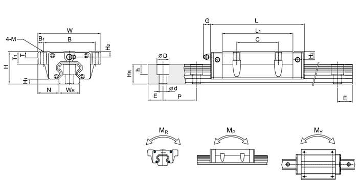 QHW靜音式重負(fù)載法蘭型直線導(dǎo)軌