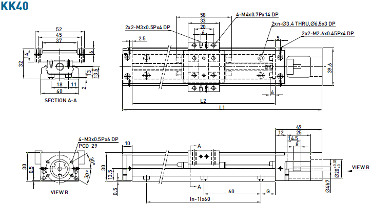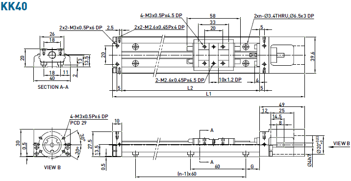 不含護(hù)蓋的KK40精密模組尺寸說(shuō)明: